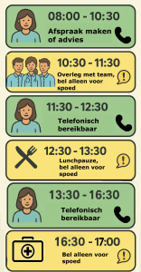 Dit kan van 08:00 en 17:00. Bij problemen die geen seconde langer kunnen wachten: bel direct 112.